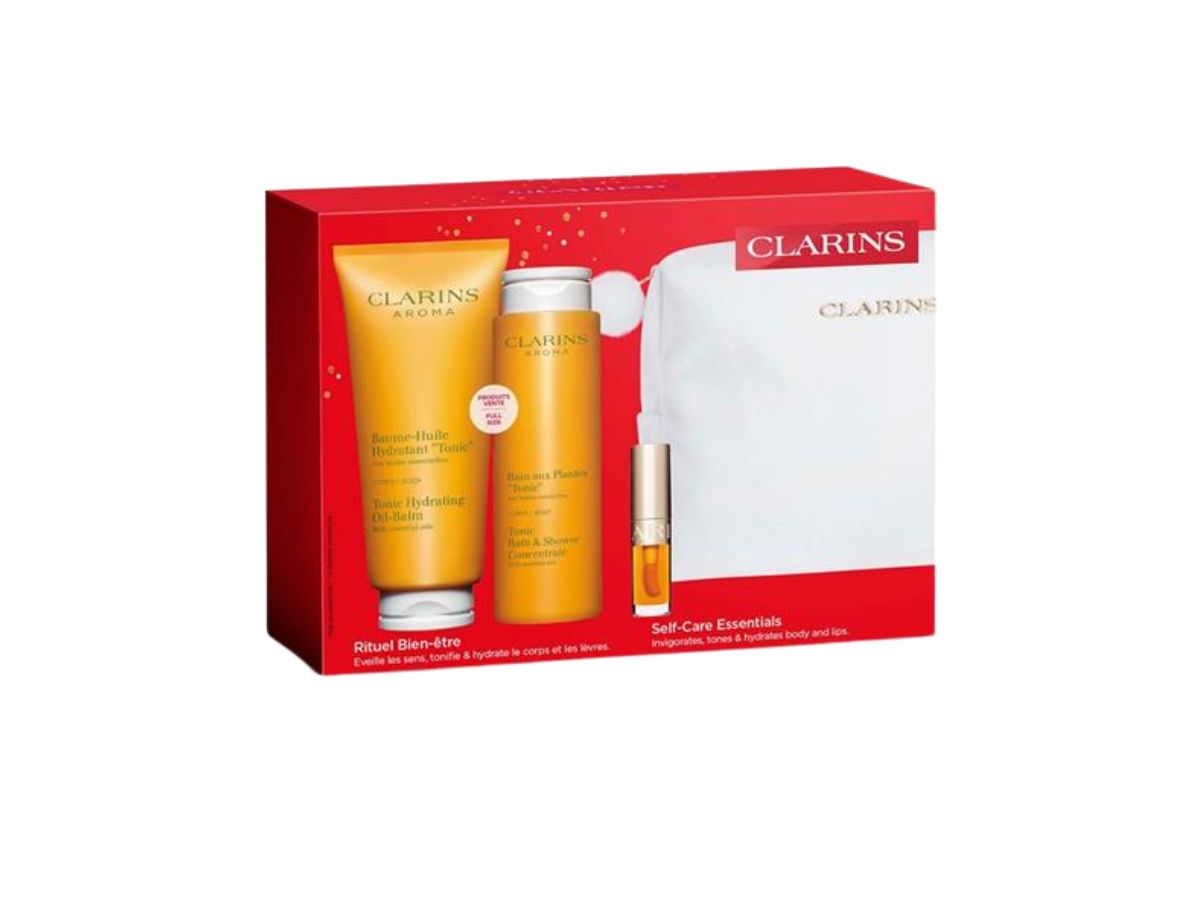 CLARINS Set Baume Beaute Eclair, Creme Jeunesse des Mains, Demaquillant Express Yeux, Total Eye Contour Gel und SOS Hydra Masque – Komplette Pflege für Gesicht und Hände