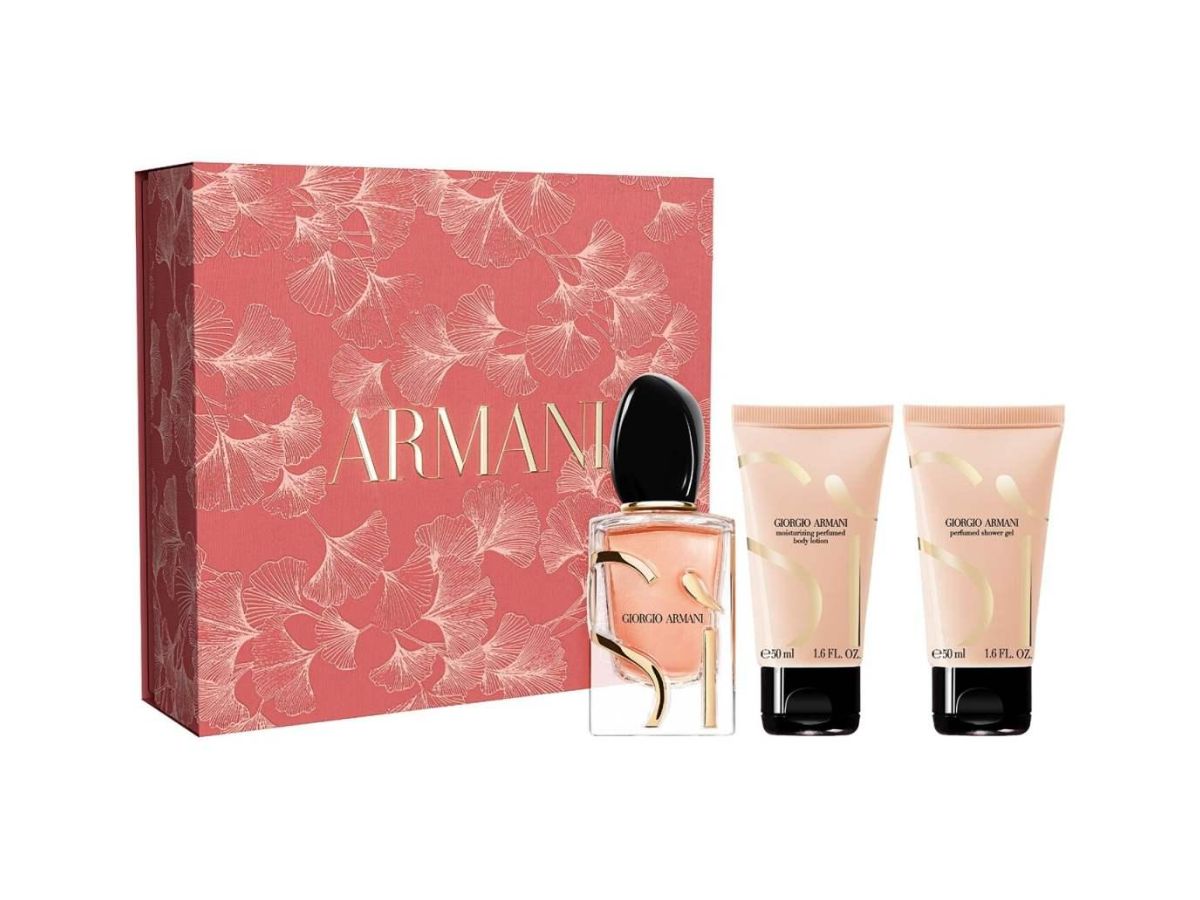 Das Set enthält Sì Eau de Parfum Intense Spray 50 ml, ergänzt durch ein Duschgel 50 ml und eine Body Lotion 50 ml, die die Duftspur auf der Haut intensivieren und verlängern. Der Duft eröffnet mit leuchtenden, fruchtigen Noten, die sich zu einem sinnlichen und umhüllenden Herzen entwickeln. Die Komposition endet mit einer warmen, tiefen Basis aus Amber- und Vanillenoten, die Weiblichkeit, Stärke und Leidenschaft zum Ausdruck bringen.