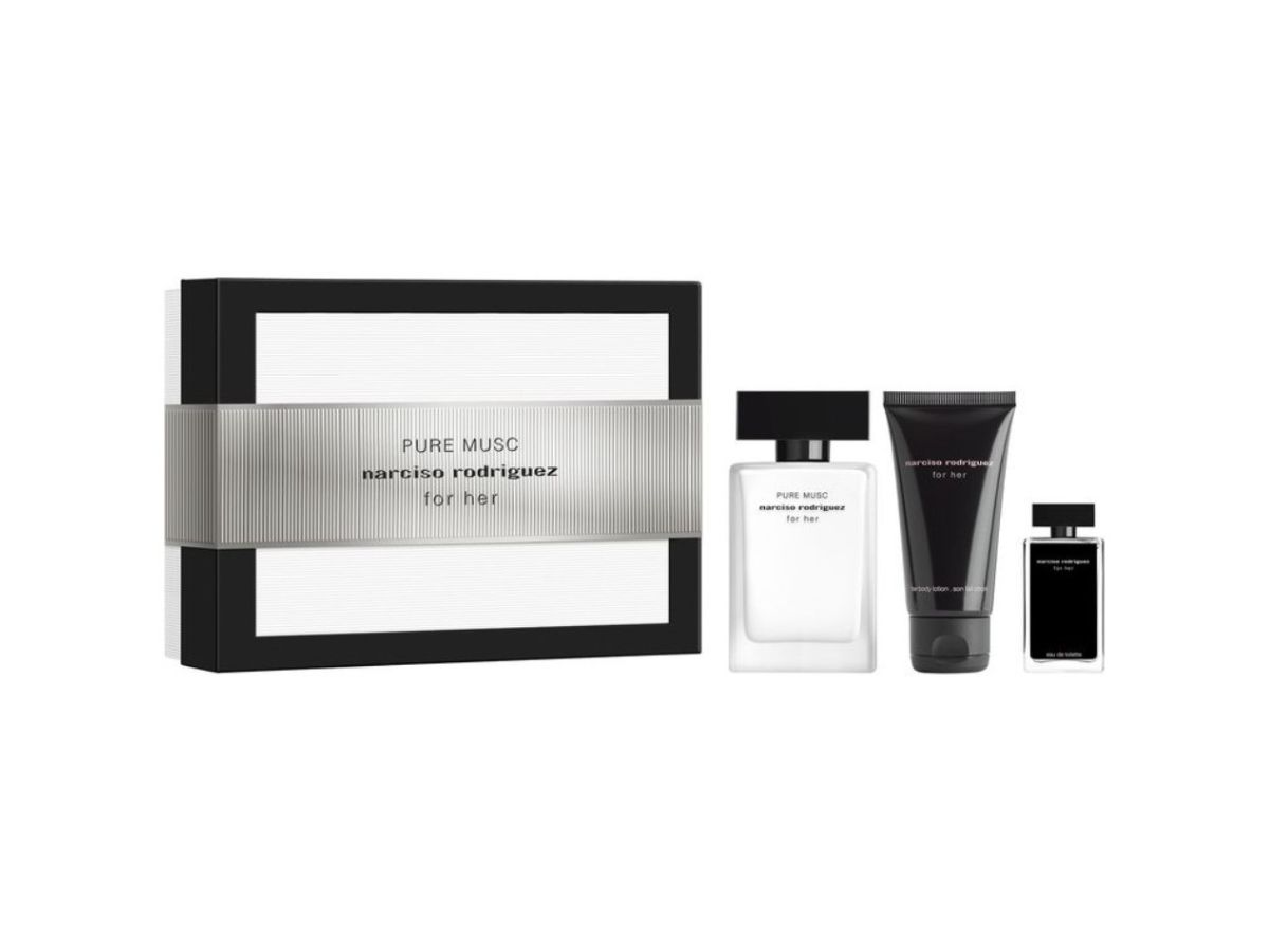 The Narciso Rodriguez For Her Pure Musc Set is an elegant gift idea designed for women who love sophisticated, sensual and timeless fragrances. The set includes Eau de Parfum Spray 50 ml, Perfumed Body Lotion 50 ml, and a 7.5 ml mini fragrance, perfect to carry with you at all times. For Her Pure Musc is an intense and enveloping feminine fragrance built around the iconic heart of pure musk, the signature of Narciso Rodriguez. Bright white floral notes, such as jasmine and orange blossom, blend harmoniously with a warm and sensual base of cashmeran, amber and patchouli, creating an elegant and long-lasting trail. The body lotion moisturizes the skin while delicately scenting it, enhancing and prolonging the fragrance. Perfect as a women’s gift, for special occasions or for indulging in a daily beauty ritual of femininity and refinement.
