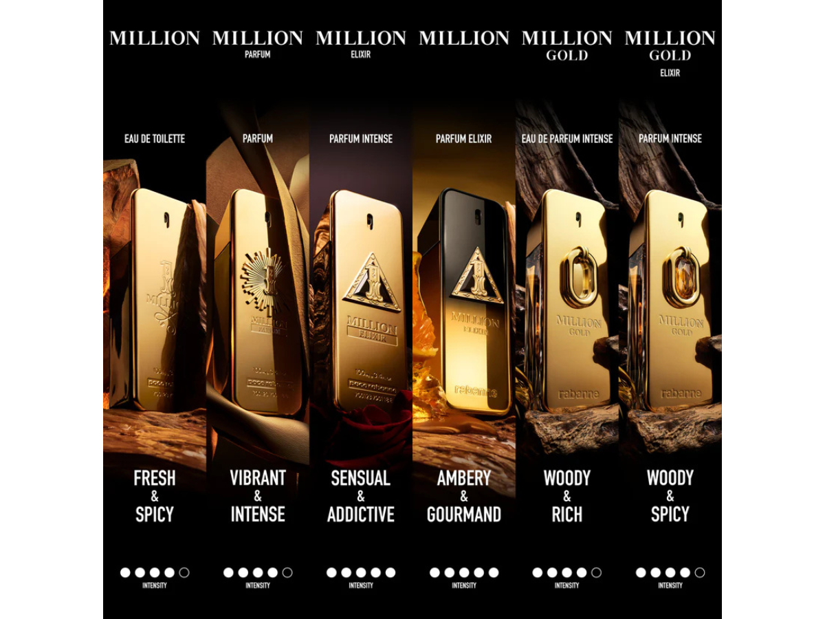 Discover the magic of the night with RABANNE 1 Million Night Elixir Parfum, the limited edition that blends the iconic gold bar with mysterious black. A bold, sophisticated, and irresistible fragrance designed for those who dare without limits and want to shine like a true treasure.